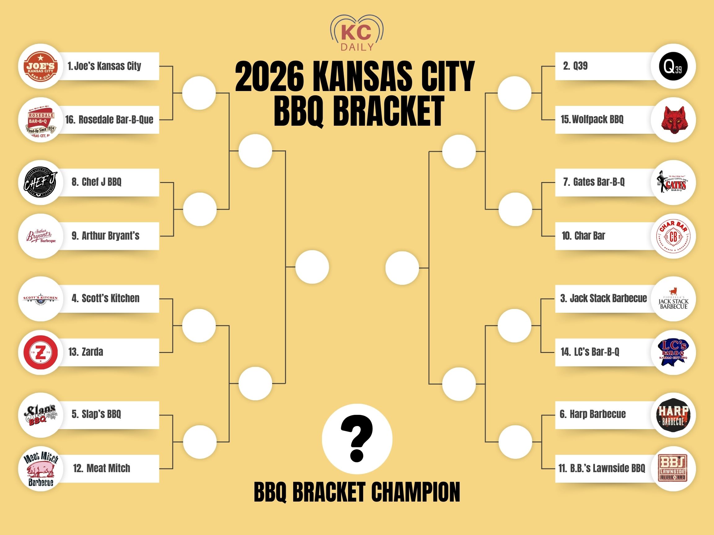 Smoky Seeding: The seeds for this year’s bracket were determined by a variety of factors: average Google review rating, number of Google reviews, Yelp reviews, past awards, etc. Joe’s Kansas City came out as the #1 seed in 2026. Are you picking any upsets?