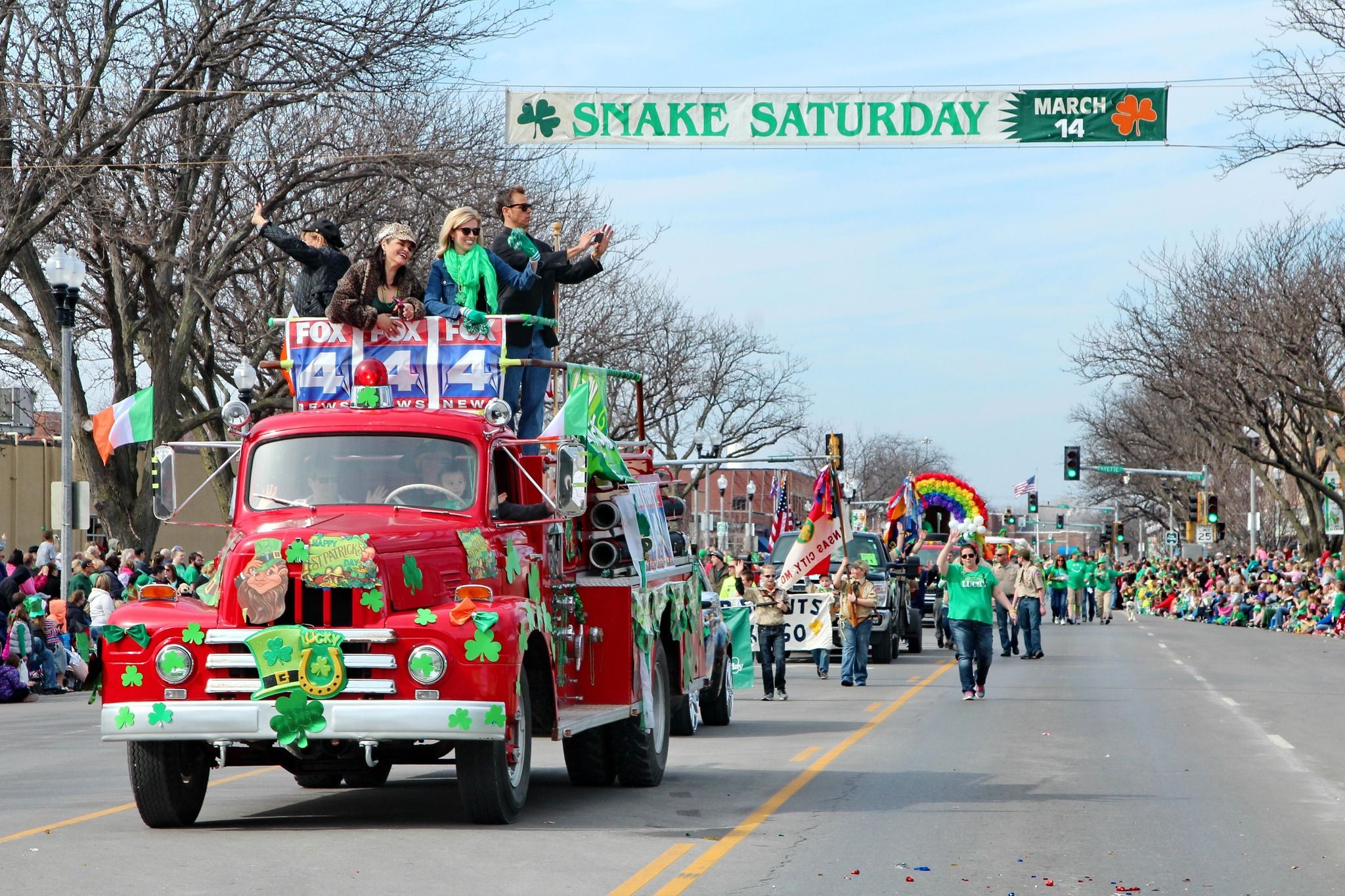Snakes on Parade: The parade starts at 16th and Swift and winds through downtown NKC, drawing crowds from across the metro for one of KC's most beloved St. Patrick's Day traditions. Before and after the parade, the festival area at Howell and 18th St. will be open from 10am to 3pm, featuring a carnival, children's petting zoo, stage show, race car show, and plenty of fair food.